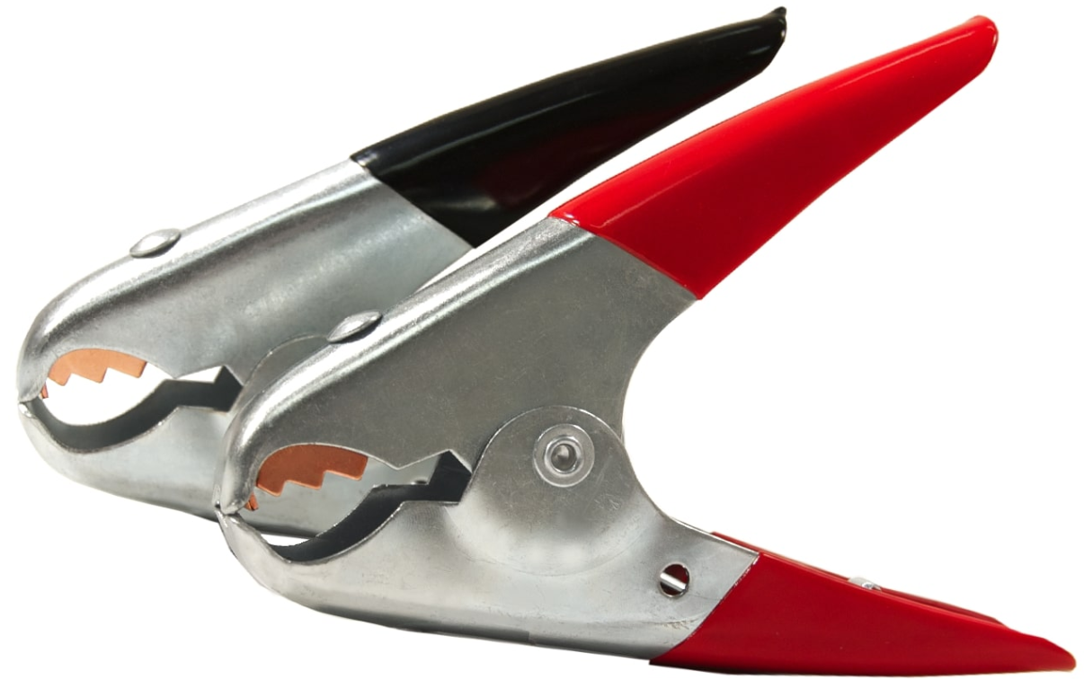 The 500 Amp Booster Clamps are sold as a pair and color coated for easy polarity identification. (602055-001)